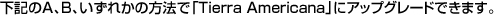 オンラインでのお手続きで「大航海時代 Online 〜Tierra Americana〜 アップグレードチケット」(2011年1月31日発売予定)をお買い求めください。「オリジナル版」、「La Frontera」、「Cruz del Sur」からアップグレードされたお客様でも、「Tierra Americana」を含む全拡張パックの機能がご利用可能となります。