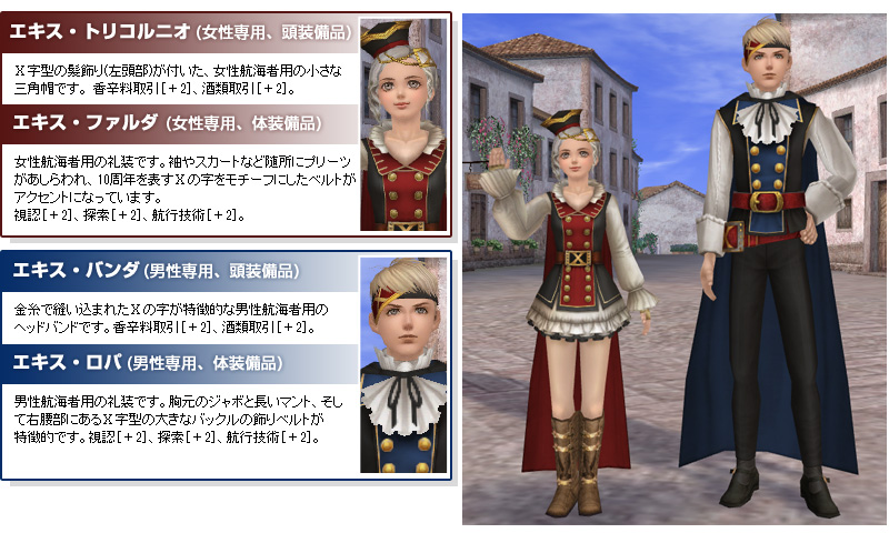 《エキス・ロパ》を初め、10周年を記念して作られた4種の装備品を作成できます(縫製スキル:ランク10)。