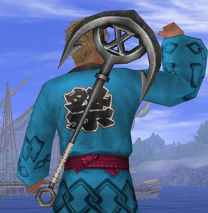 10周年を記念して作られた錨状の武器です。Xの字がモチーフです。操舵[+2]、剣術[+2]、兵器技術[+1]。