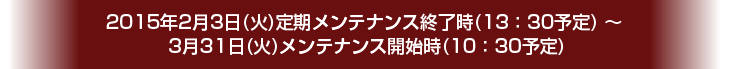 | 第2回:2015/4/7(火) 13:30 | 2015/3/3(火) 10:30 〜 3/31(火) 10:30までに有効期限を延長されたアカウント |