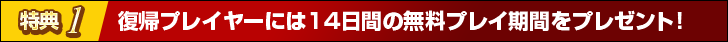 - 無料プレイ期間は、「ウェルカムバックキャンペーン」実施期間中にログインした時点を起算日として14日間です。