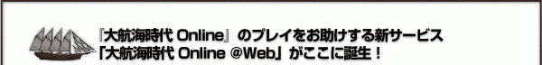 「@Web」正式サービス開始となる2008年2月20日(水)定期メンテナンス終了時より、「大航海時代 Online @モバイル」の各種チケットが、「@Web」と共用のチケットとなりますので、現在「@モバイル」の有料機能をご利用中の方は、追加料金は一切無しで「@Web」と「@モバイル」双方の有料機能を全てご利用いただけます。 |