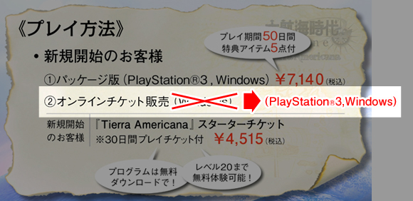 | ・「Tierra Americana」スターターチケット(PS3®/Windows) 4,515円[税込] ※プレイ期間30日間付属 |