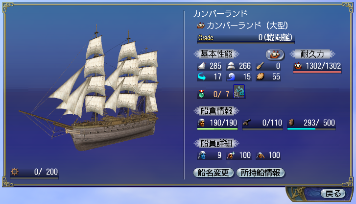 スキル効果:漕船[+3] 回避[+3] 防御[+3] 装備効果:収奪率上昇[ランク12] |