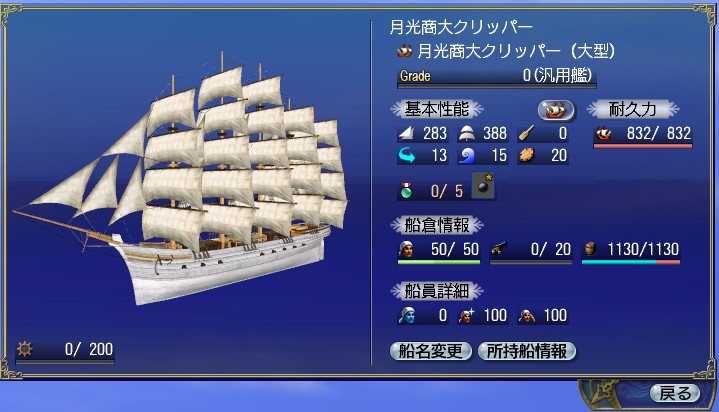 特殊な木材で作られた月光商大クリッパーと引き換えができる券。 ※船の詳細は下記と、ゲーム内のDelfinショップでご確認ください。 ※この引換券で交換した船には、オプションスキルが1つランダムで付与されます。 |