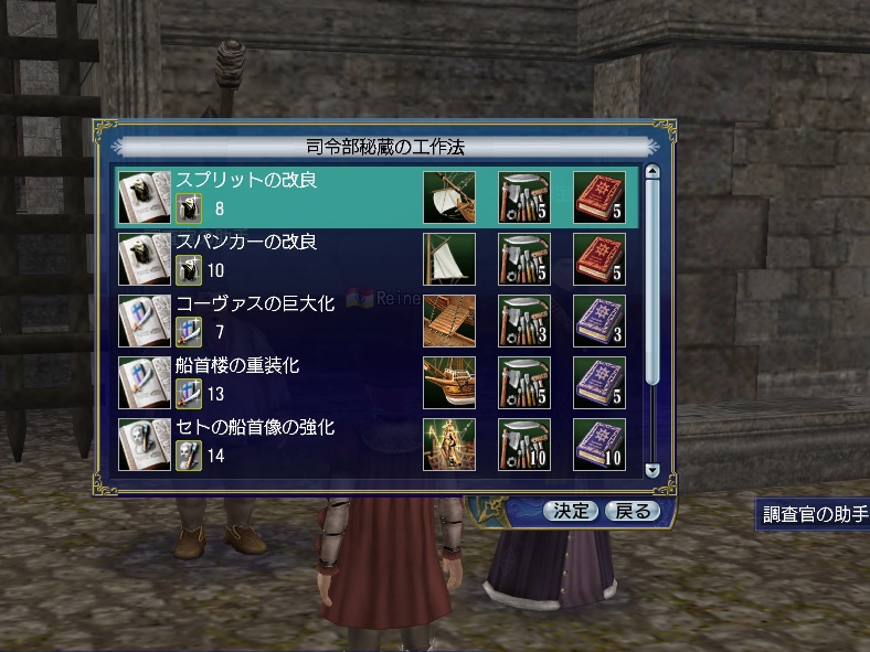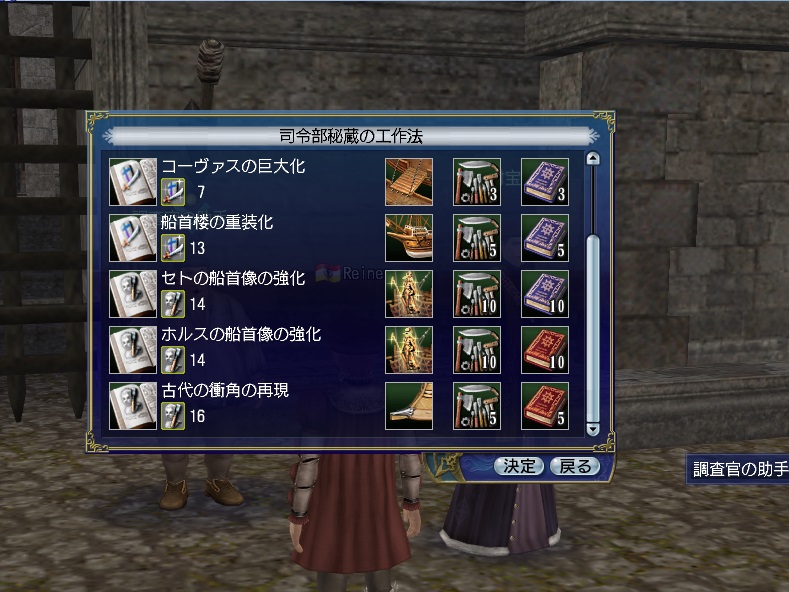 またNPC“調査官の助手”からも新しいレシピを利用できます。こちらのレシピからはいつでも生産を行うことができます。