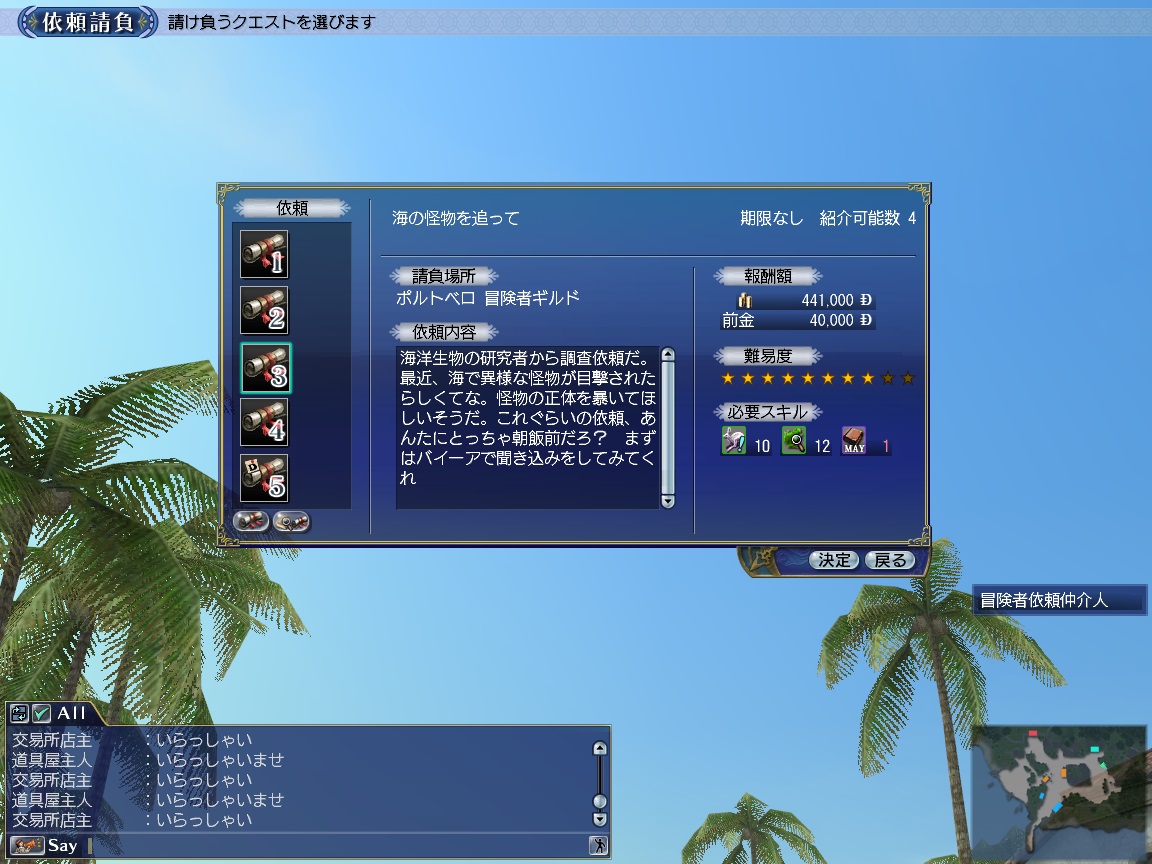 冒険者ギルドの依頼仲介人から、新たな発見クエストを請負うことができます。