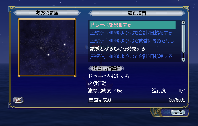 ワールドガイド第一回では、新しく追加された「星空調査」と、