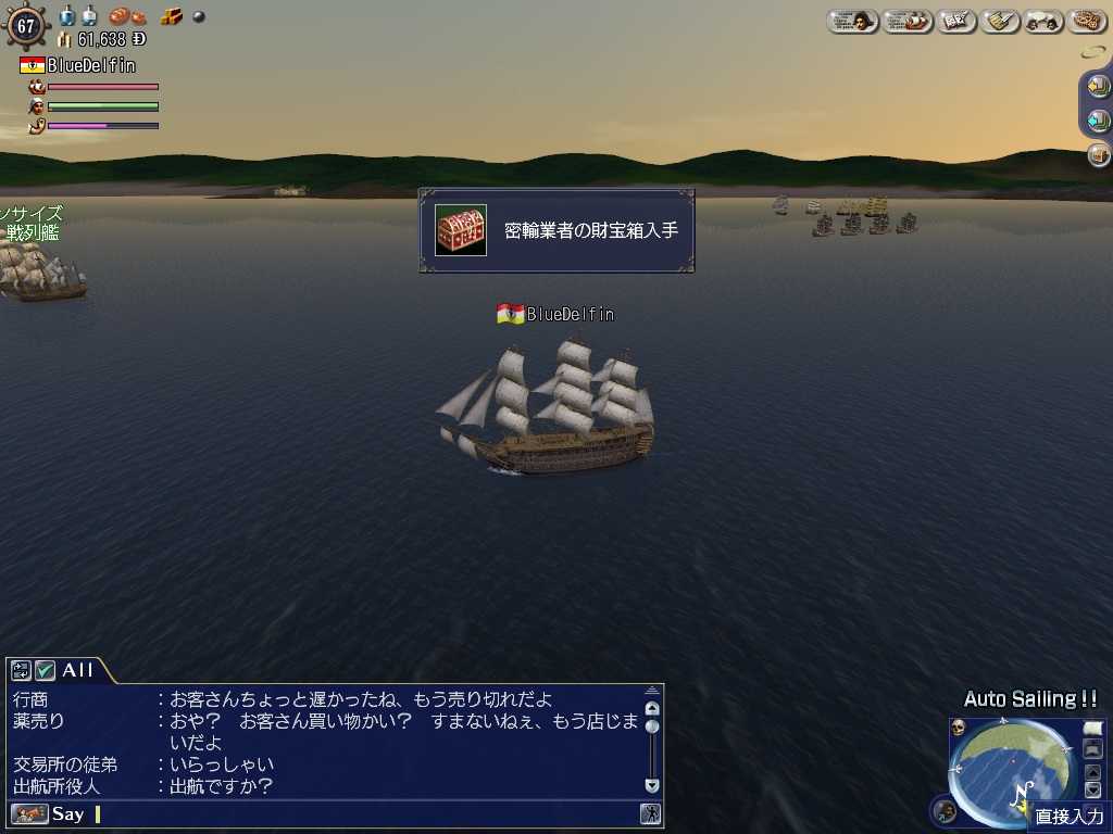 毎時0分になると、どこかの海域に「無法者」または「密輸業者」の船団が出現します。
