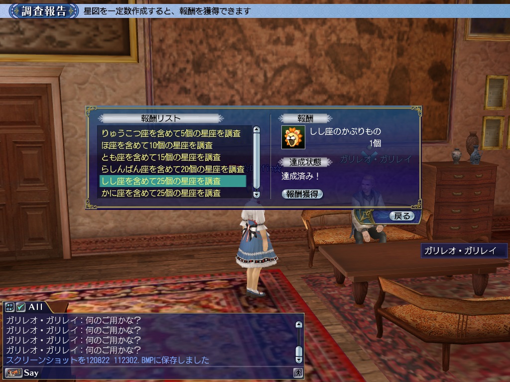 黄道星座を含め一定数の星座調査を完了すると、“ガリレオ”から新たな報酬を獲得できます。