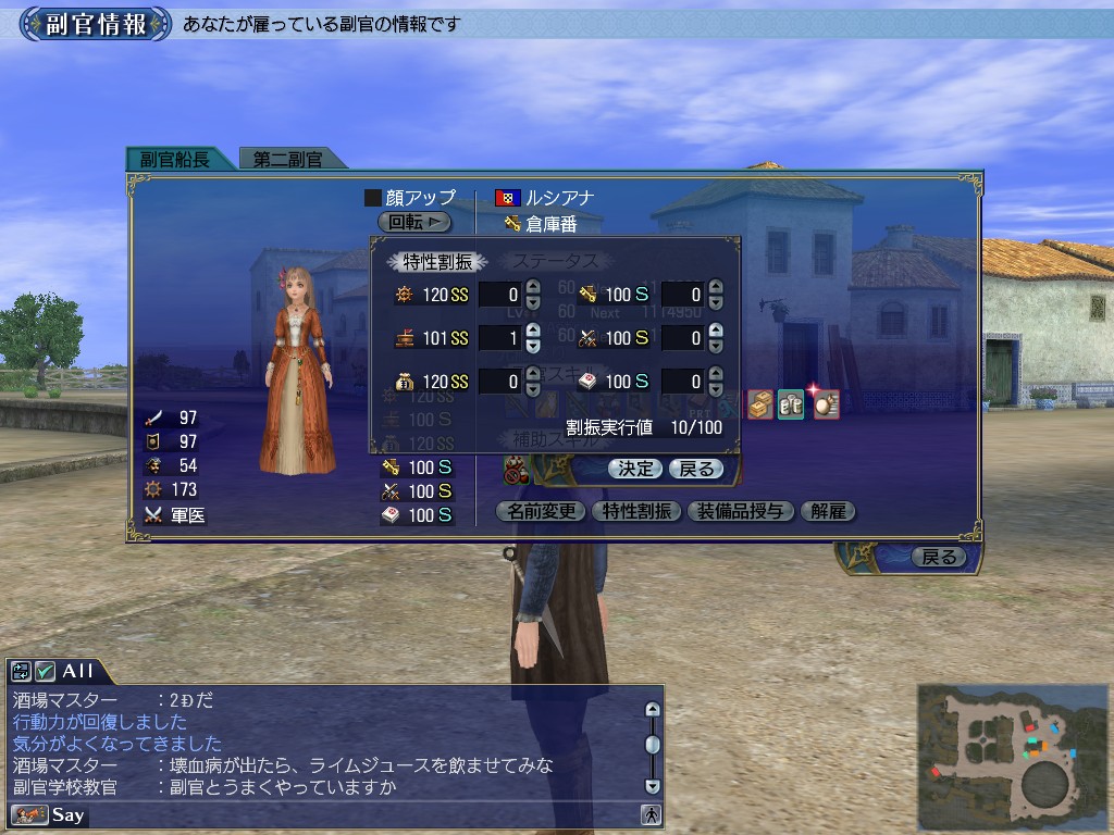 副官船長に任命されている副官は特性が100になると、対応する特性の上限解放クエストを達成することで、その特性の上限が解放され、さらに成長できるようになります。