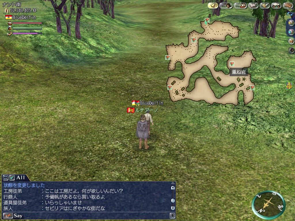 副官専用効果「ガイド」により、陸地調査を完了した上陸地点で測量地図のオブジェクトを選択すると、直接ワープできる