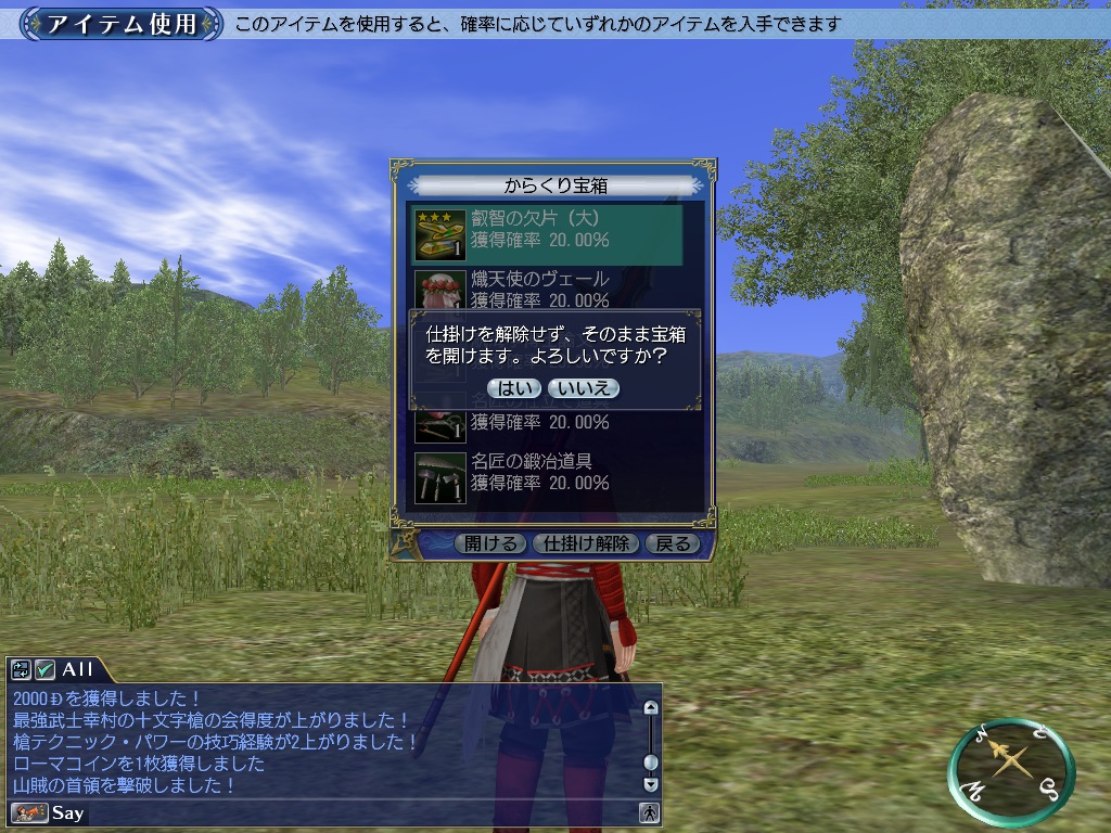 仕掛けを解除せずに開けると、通常のアイテムのみ入手できます。