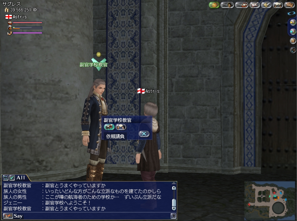 自分の副官を同行させて、サグレスにいるNPC”副官学校教授”の元を訪れてみましょう。