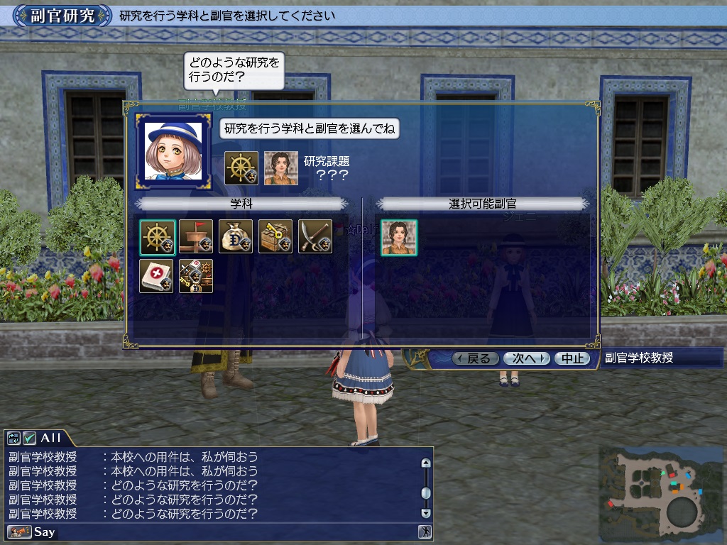 副官学校に入学すると、NPC “副官学校教授” の元で副官研究を開始できます。