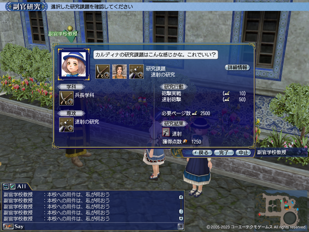 研究行動を実施して、研究を完成したら、NPC “副官学校教授” または各地の学者に報告しましょう。