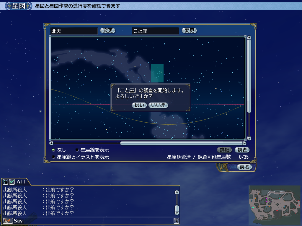 さまざまな行動を行い、星座の情報を集め、全天星図の完成を目指しましょう。