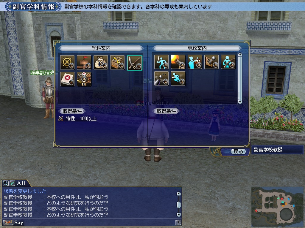 自分の副官を同行させて、サグレスにいるNPC”副官学校教授”または各地の学者を訪れてみましょう。