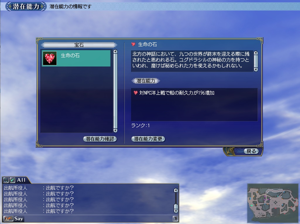 潜在能力画面で入手済みの宝石と有効中の潜在能力の確認ができます。