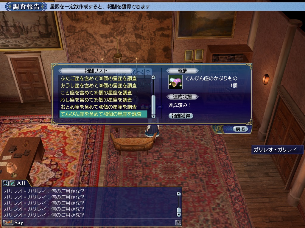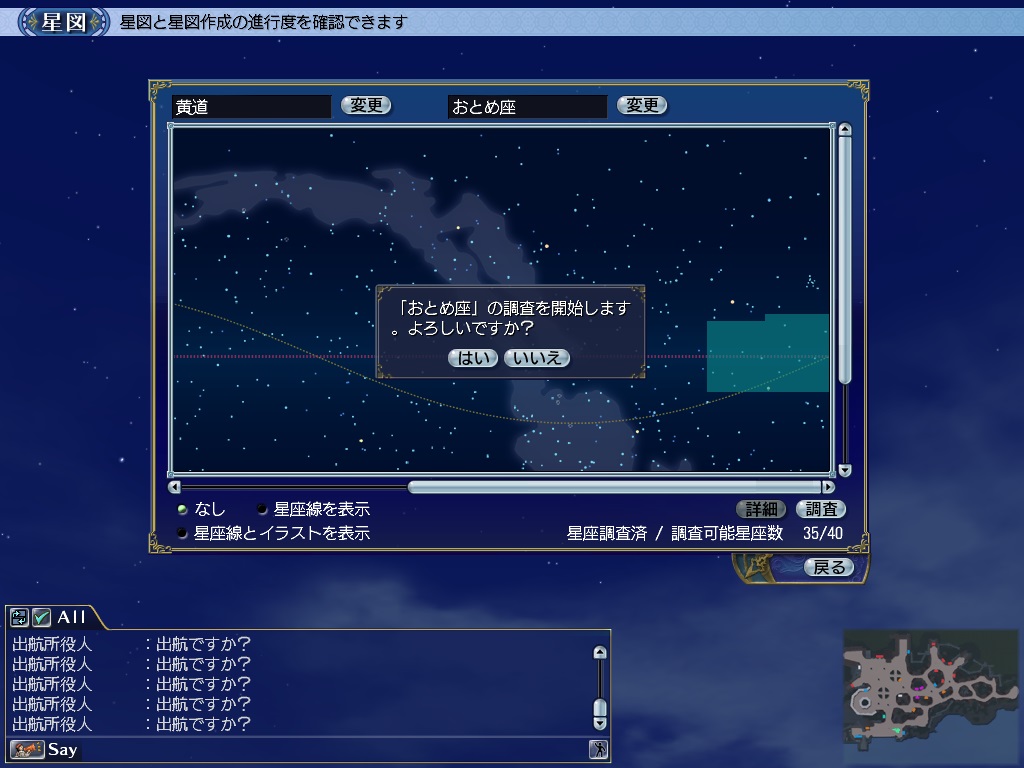 さまざまな行動を行い、星座の情報を集め、全天星図の完成を目指しましょう。
