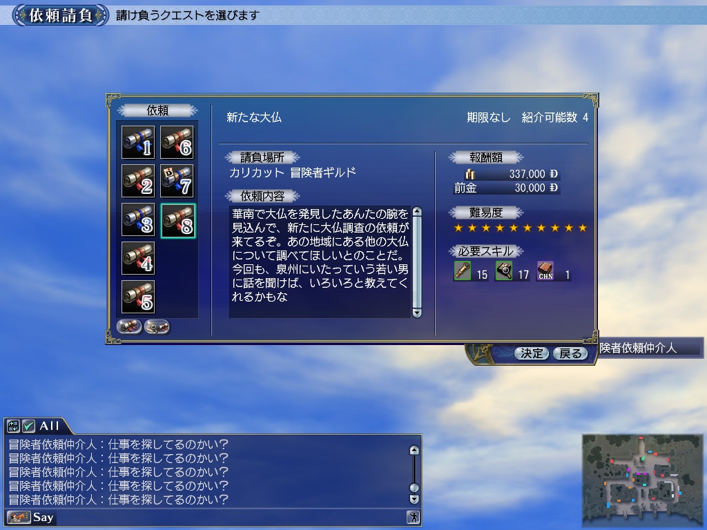 冒険者ギルドの依頼仲介人から、新たな発見クエストを請負うことができます。