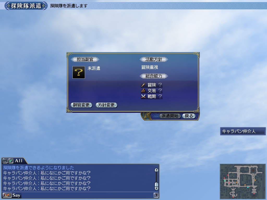 派遣中または帰還した探険隊の活動状況は、メインメニュー「日誌」 の「探険隊派遣情報」で確認できます。