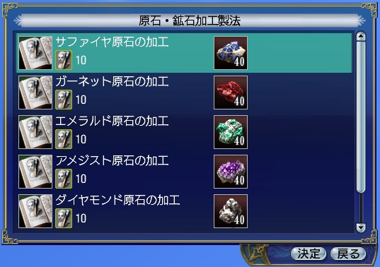 また、各種原石の加工品を材料とする生産レシピが追加されます。