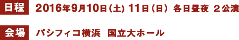 9/10(土)・11(日)パシフィコ横浜 国立大ホール