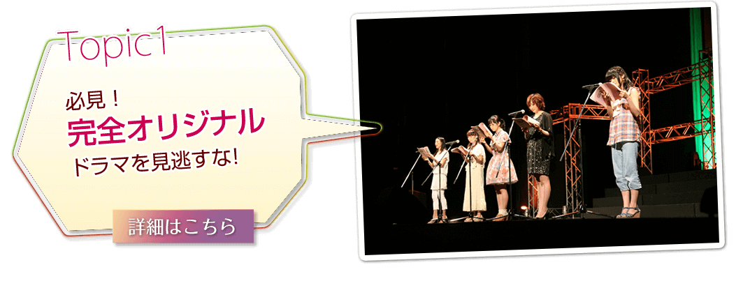 ※会場内で購入されたグッズにつきまして、イベント会場、および会場周辺においての、金銭をもっての個人売買行為は一切禁止させていただきます。また、レジャーシート等を広げてのトレーディング行為は他のお客様のご迷惑になりますので、ご遠慮ください。