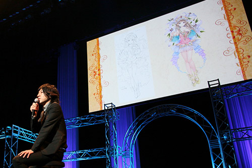 トークコーナーでは、新作タイトルの紹介を中心にイラストレーターの岸田メルさん、「黄昏」シリーズ・アーシャ役の井上麻里奈さん、アーティストの紗也さんが作品について、お宝スチルなどを交えつつ、たっぷりと語りました。