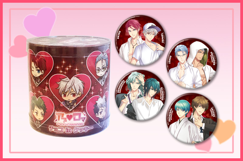 ア・ブ・ナ・イ♥ネオロマンス チョコinクッキー【価格】 1,700円セット内容:クッキー8枚入り/75mm缶バッジ1個(絵柄全4種からランダムで1個封入)【賞味期限】2019年5月11日 ※未開封の場合【原材料】小麦粉、マーガリン、砂糖、ココアパウダー、植物油脂、鶏卵、アーモンド、チョコレート、ヘーゼルナッツペースト、コーンスターチ、 食塩、加工デンプン、乳化剤、着色料(カラメル、カロチン)、香料、pH調整剤、酸化防止剤(V.E)、(原材料の一部に乳成分、大豆を含む) (1/11追記)イラスト/ぽぽるちゃ ミニキャライラスト/アオイ冬子