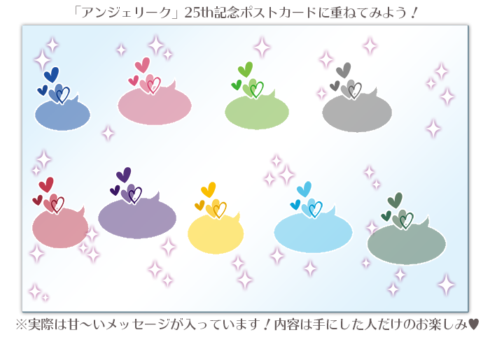 どちらにも【「アンジェリーク」25周年記念ポストカード】が付きますが、3公演通し券にはさらに【守護聖様のラブラブ♥クリアカード】が付いてきます。ポストカードの上にクリアカードを重ねると……? 25周年ならではのスペシャルな特典、ぜひゲットしてくださいね。