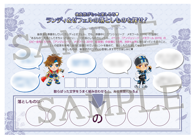 ラリー用紙は、9/15(日)開催イベント「アンジェリーク メモワール2019」のチラシ置き場に設置しますので、ぜひご参加くださいね♪