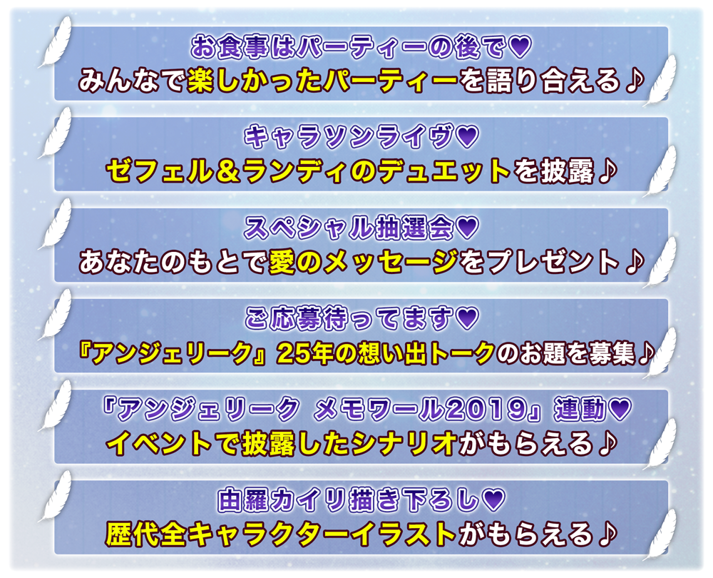 「ネオロマンス 25th Anniversary /アンジェリーク メモワール2019」会場にて、後夜祭のチケットを特別販売いたします!