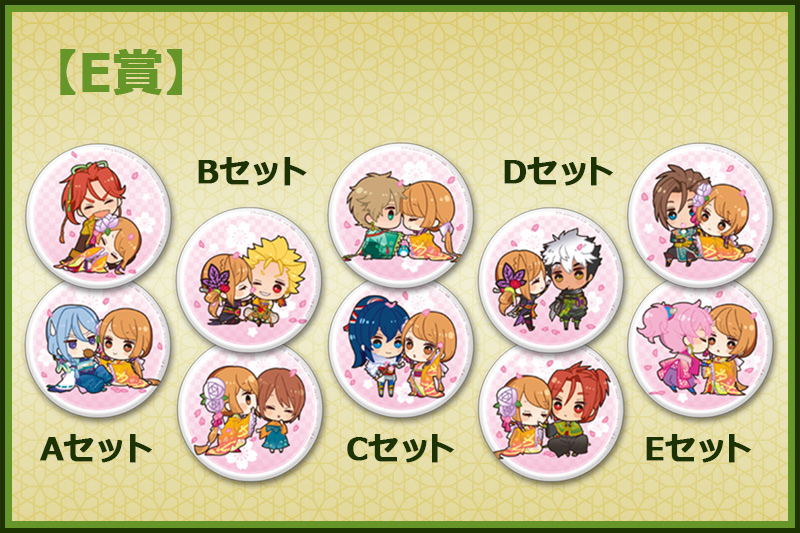 【E賞】下天の華 缶バッジ2個セット(全5種)(Aセット…織田信長&桔梗/明智光秀&桔梗、Bセット…羽柴秀吉&藤林ほたる/石田佐吉&桔梗、 Cセット…徳川家康&桔梗/森 蘭丸&桔梗、Dセット…百地尚光&藤林ほたる/織田信行&桔梗、 Eセット…黒田官兵衛&桔梗/竹中半兵衛&桔梗)ミニキャライラスト/くまだゆか