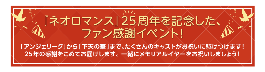 皆さまのおかげをもちまして、「ネオロマンス♥25th Anniversary」を大成功のうちに終えることができました。