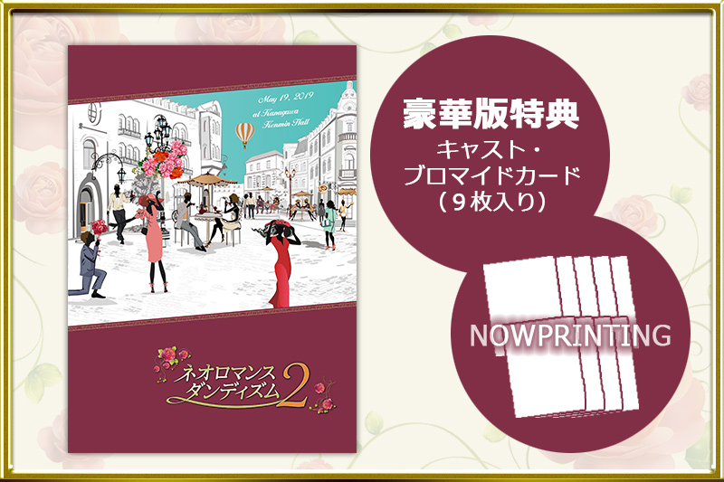ネオロマンス♥ダンディズム2 パンフレット 豪華版【価格】 4,500円「ネオロマンス♥ダンディズム2」のパンフレットは、“オープンカフェ&青空デート”をテーマとした撮り下ろし写真とインタビューを収録!! さらに今回は“ダンディ”なキャストのみなさんに、おしゃれやファッションへのこだわり、ステージ衣装や私服を決めるときのポイント、 他人のファッションで気になるところ、ご自身のファッション遍歴などについても、熱く語っていただきました!!