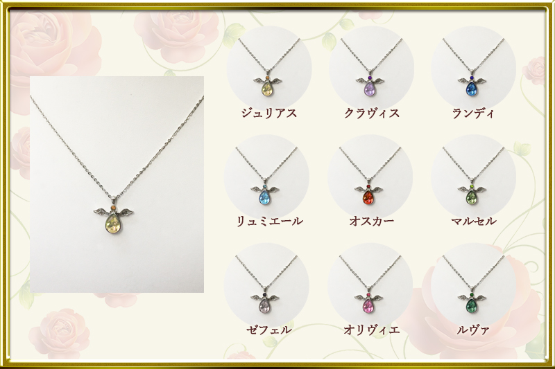 アンジェリーク ルトゥール ペンダント ~守護聖からの贈り物~(全9種)【価格】 各2,800円(ジュリアス/クラヴィス/ランディ/リュミエール/オスカー/マルセル/ゼフェル/オリヴィエ/ルヴァ)素材:亜鉛合金(ペンダントトップ)、真鍮・鉄(チェーン)、アクリル