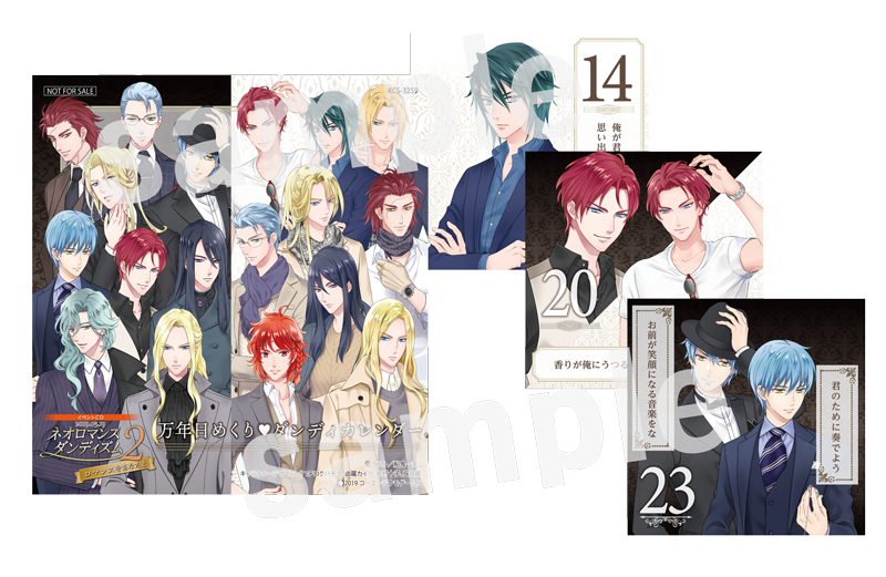 船鬼先生の「ネオロマンス♥ダンディズム」「ネオロマンス♥ダンディズム2」描き下ろし"ダンディ"キャラクターが日替わりで楽しめる、CDケースサイズで卓上に置くのにピッタリです。