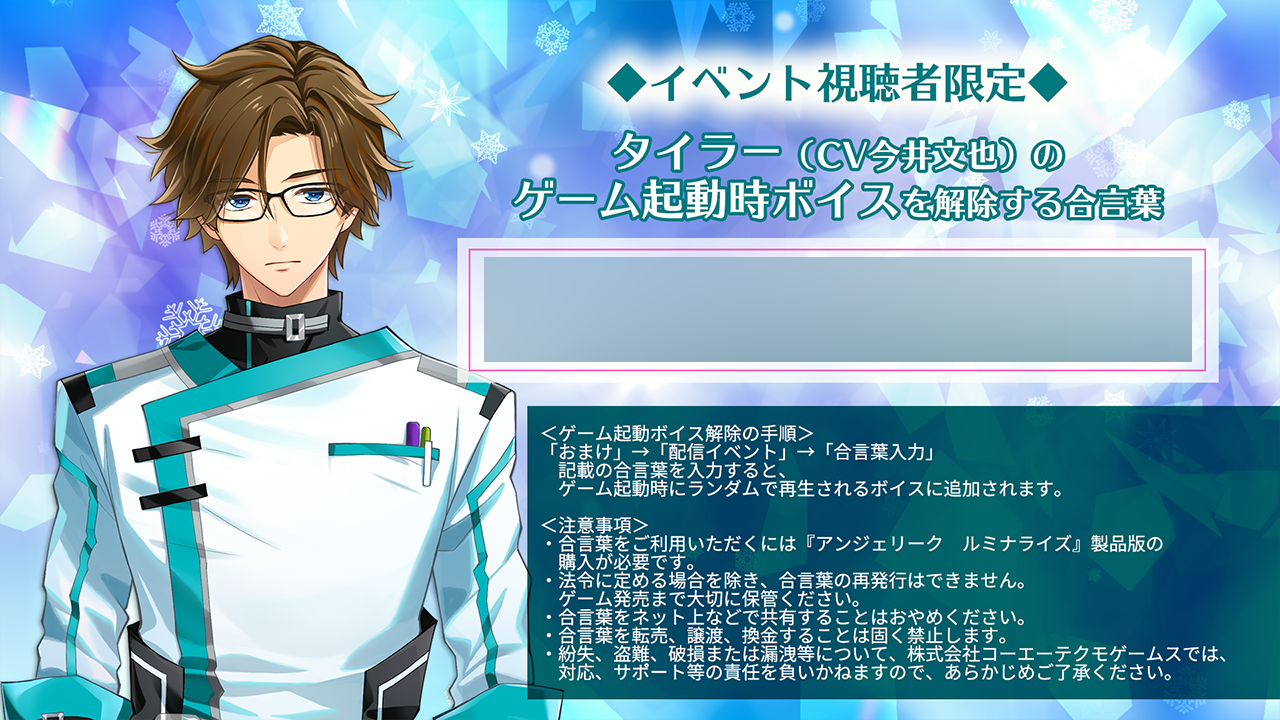 さらに! 配信視聴者限定で、当日新たに公開する”あるサブキャラクター”のゲーム内ボイスが手に入る合言葉も!■ゲーム発売日
