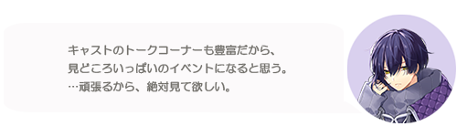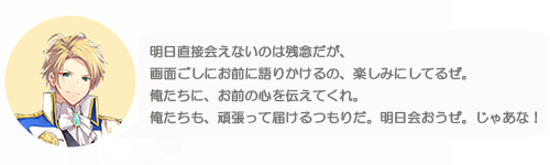 さらに! 後夜祭では、昼の部は神鳥の守護聖、夜の部は聖獣の守護聖のコメントが届きます!!