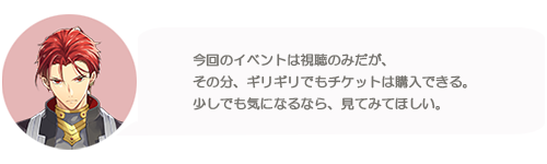 イベント当日は、ジュリアス様・クラヴィス様以外は裏方に徹してるから見られないんだよね