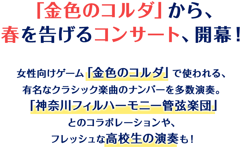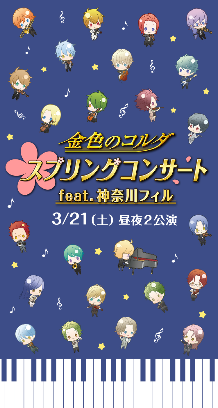 2020年2月26日に発表された、新型コロナウイルス感染症対策本部からの大規模イベントの中止や延期・規模縮小の要請を受け、3月21日に予定していました『金色のコルダ スプリングコンサート feat.神奈川フィル』について開催を見送ることを決定いたしました。