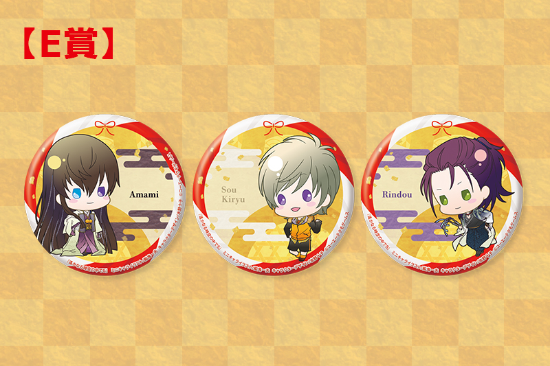 【E賞】遙かなる時空の中で5 缶バッジ3個セット(天海&桐生 祟&リンドウ)ミニキャライラスト/船鬼一夫