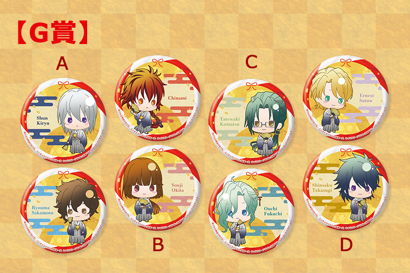 【G賞】遙かなる時空の中で5 新春Ver. 缶バッジ2個セット(全4種)(A…桐生 瞬&坂本龍馬/B…チナミ&沖田総司/C…小松帯刀&福地桜智/D…アーネスト・サトウ&高杉晋作)ミニキャライラスト/船鬼一夫
