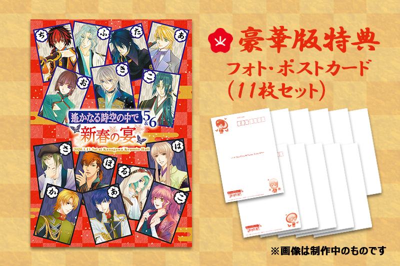 遙かなる時空の中で5&6 ~新春の宴~ パンフレット 豪華版【価格】 5,000円「新年の宴」をテーマにした出演者11人の撮り下ろし写真&インタビューに加え、神子キャスト・高橋美佳子さんと斎賀みつきさんの座談会も収録した、イベント公式パンフレットです。