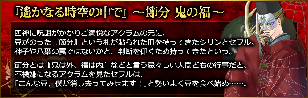 「遙かなる時空の中で5&6 ~新春の宴~」会場にて、「遙か節分祭 ~福は内! 鬼も内!~」のチケットを特別販売いたします!