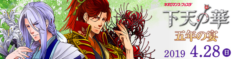 「下天の華」オンリーイベント第3弾、開催決定! 8/21(日)神奈川県民ホール 大ホールにて、昼夜2公演予定。 出演は、松風雅也、野島健児、森久保祥太郎、島﨑信長、檜山修之、岡本寛志、柿原徹也、ほか。ぜひお楽しみに! |
