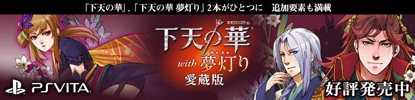 | 2016.7.22 | 『下天の華 with 夢灯り 愛蔵版』公式サイト更新! オススメ武将診断、新規スチル、「愛蔵版」とは など! |
