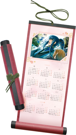 主人公が駆使する忍法帖の形をした、掛け軸カレンダー。